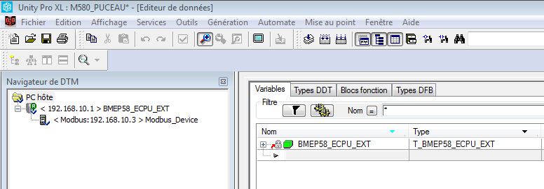 Jusqu'à présent sur le M340 je me paluche les requêtes à la mano, je vais pas payer un coupleur NOC à 2000 € pour pouvoir faire de IO-Scanning, Mais sur un M580 j’ai commencé à regarder le DTM IO_Scanning pour éventuellement avoir à l’utiliser, j’ai pas trouvé ou et comment déclarer les variables à échanger, j’ai du rater quelque chose, LOL