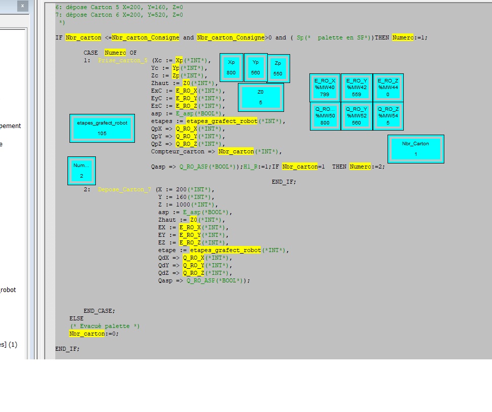 Oui, en genéral, je programme en SFC. Le robot fait 6 fois la même chose (Depose) mais avec des paramètres différents donc je trouvais que programmer des fonctions et utiliser le ST était plus approprié