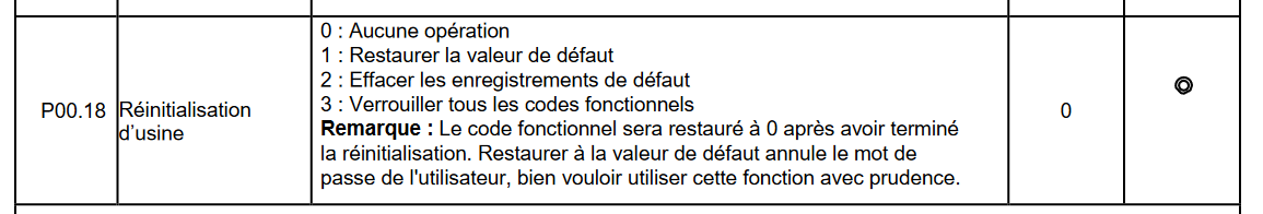 Merci pour vos réponses qui m'ont mis sur le chemin, j'espère que post servira à d'autre personnes pour débloquer ce type de variateur.