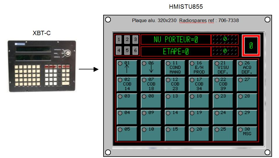 (Rétrofit = Opération consistant à remplacer l’afficheur obsolètes par le terminal tactile IHMSTU855 sans en modifier les fonctions ni le programme automate associé)