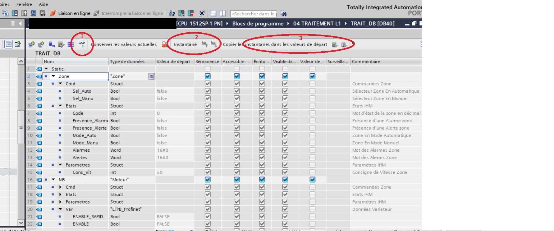 Si tu modifie hors ligne un nom de variables dans un DB il te dira que le DB en ligne est différent et si tu le transfère dans l'automate tu partira sur les valeurs initiales.