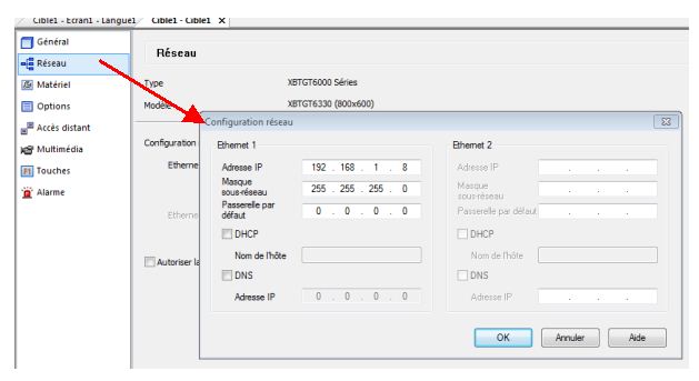Disons que pour transférer il faut que l’adresse IP qui figure dans Vijeo-designer Transfert Ethernet soit identique à l’adresse IP qui figure dans le Runtime installée sur le PC