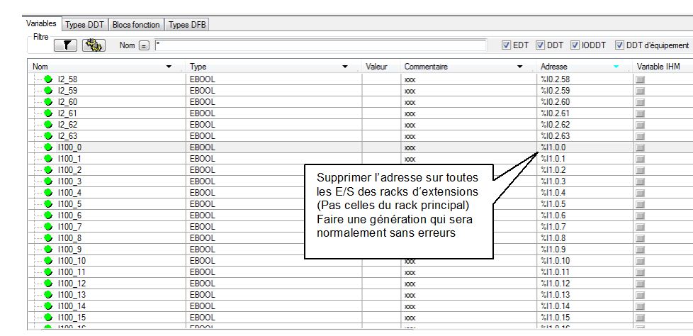 et après on verra. Pour ça il faut supprimer toutes les adresses qui concernent les E/S des racks d'extension , supprimer l'adresse pas la ligne