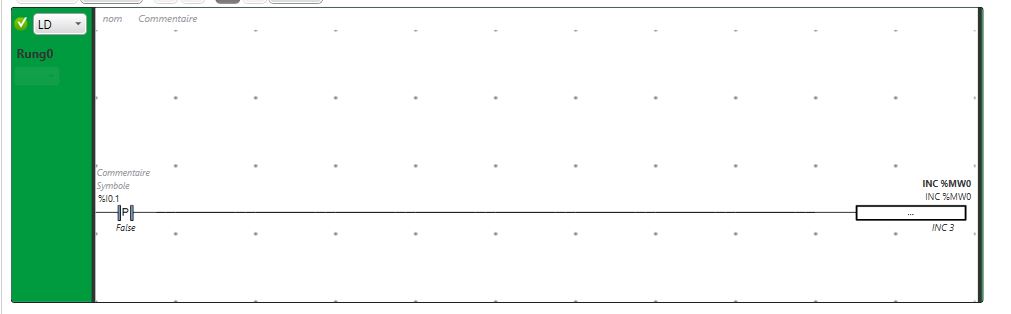 Lorsqu'on appuie sur un boutton poussoir liée à l'entrée %I0.1 un mot mémoire % Mw1 incrémente pour ce faire j'ai utilisé le bloc de fonction avec l'expression INC mais le probleme que la valeur %Mw1 n'incrémente pas de 1 mais de 10 et apres de 11 et apres de 12 ...... comment je peux faire pour incrementer de 1 ??