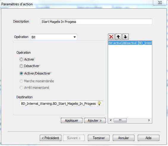 - Je fais une première action, au start du magelis qui set à 1 mon bit (comme mon exemple avec l'image).