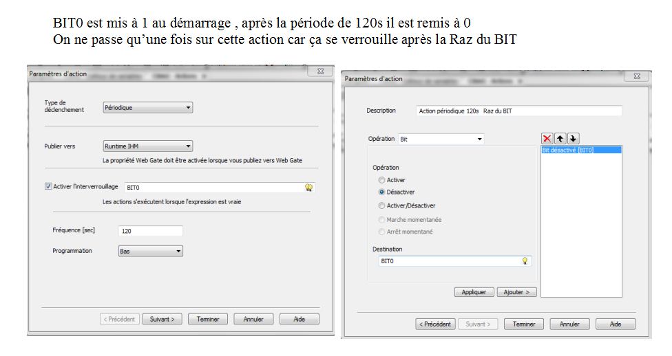 Mais ensuite, ce bit je voudrais le mettre à 0 deux minutes après le start du Magelis.