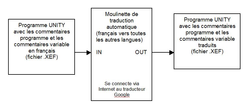 C’est de la traduction automatique mais ça dégrossit déjà l’affaire, la moulinette permet si besoin de corriger les traductions avant de les intégrer dans le fichier résultant, Pratique quand on as plus de 8000 lignes de commentaires à traduire. La moulinette n’est pas distribuée car pas d’interface utilisateur et pas de notice (pas le temps) Me consulter si le besoin s’en fait cruellement sentir.