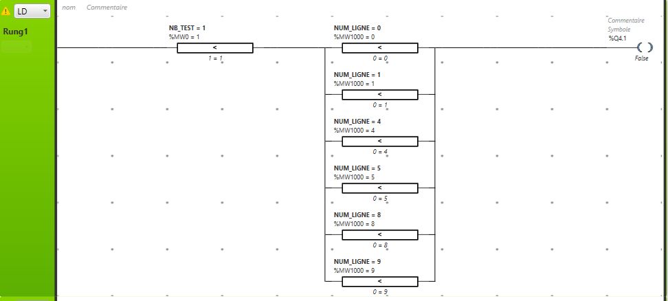 J'ai un bout de grafcet simple qui doit activer une sortie automate si un mot = un entier et si un autre mot = un autre entier, seulement voilà, même quand les conditions sont remplies, la sortie (en l'occurrence %Q4.0) ne passe pas à l'état 1.