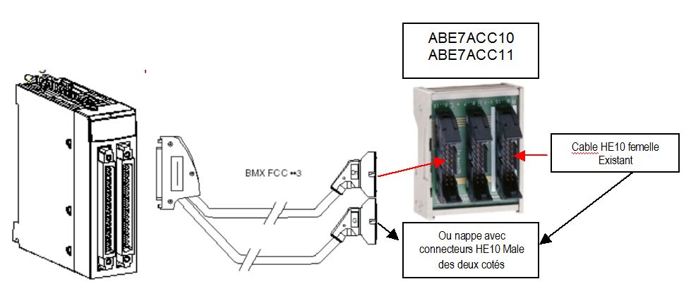je cherche donc une sorte d'adapteur qui permetterait de se fixer sur les connecteurs fcn40pts des cartes X80 avec en sortie 2 connecteurs male HE10 pour reprise sur les cables existants...
