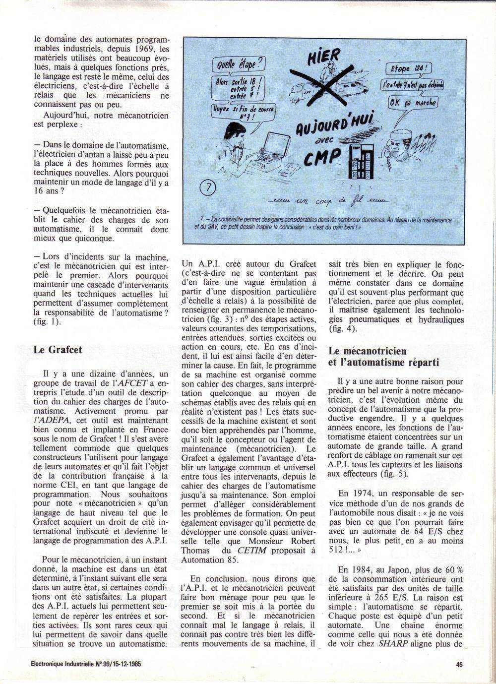 Deux articles sur les automates Crouzet CMP31 provenant de la revue Electronique Industrielle.