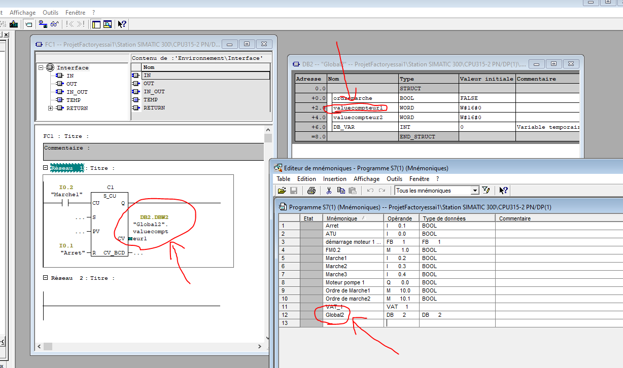 En deux dans la table des mnémoniques on donne un nom au DB dans l'image sur l'exemple que j'ai mis Global2
