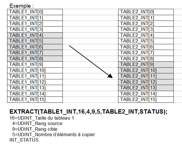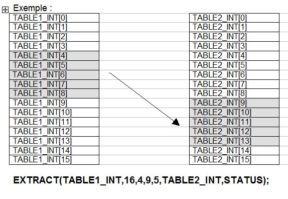 Je remarque qu’il manque cruellement la fonction COPY_ARINT_ARINT pour copier un certain nombre d’éléments d’un tableau ver un autre tableau (ou sur le même) en cherchant dans l’aide en ligne pendant 3 jours et 3 nuits d'affilés, j’ai trouvé la fonction EXTRACT qui peut le faire