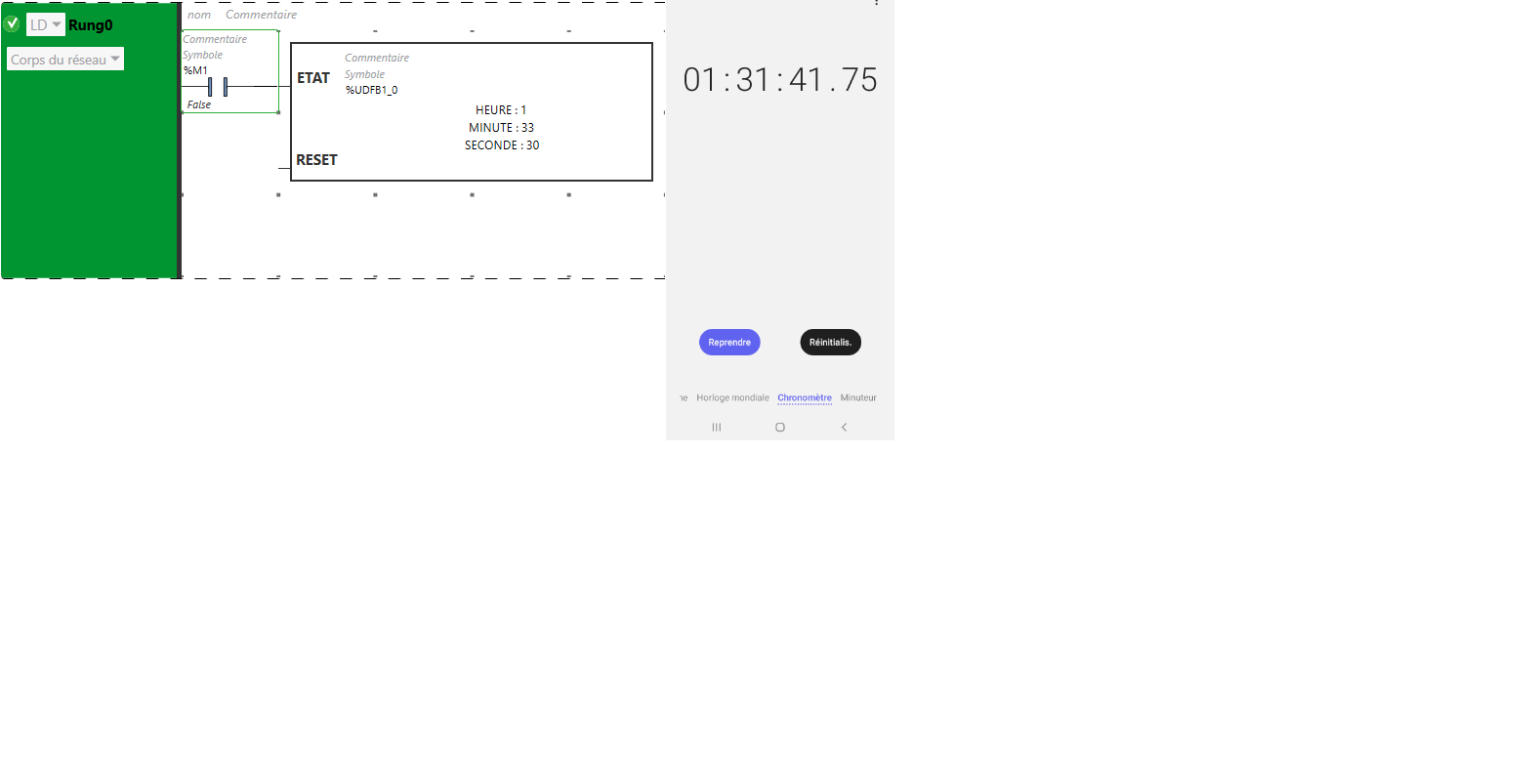 Pour l'impulsion de mes seconde j'ai utilisé le bit systeme %s6 et un front montant mais le problème c'est que quand je compare le temps compté avec le chrono de mon télephone 1min la dessus correspond a environ 54 seconde sur mon bloc.