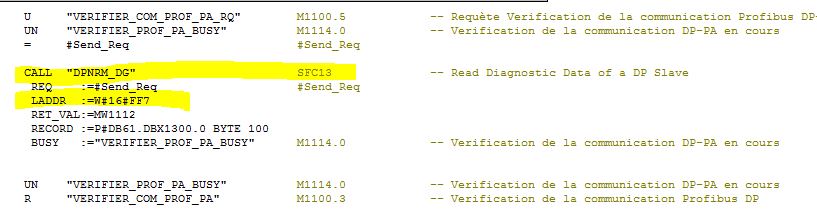 Ça passe par l'appel du SFC 13 qui lis l'adresse diagnostique de ma passerelle DP / PA 4087