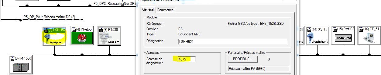 je comprend pas le lien entre l'adresse profibus, l'adresse de diagnostique de chaque périphérique