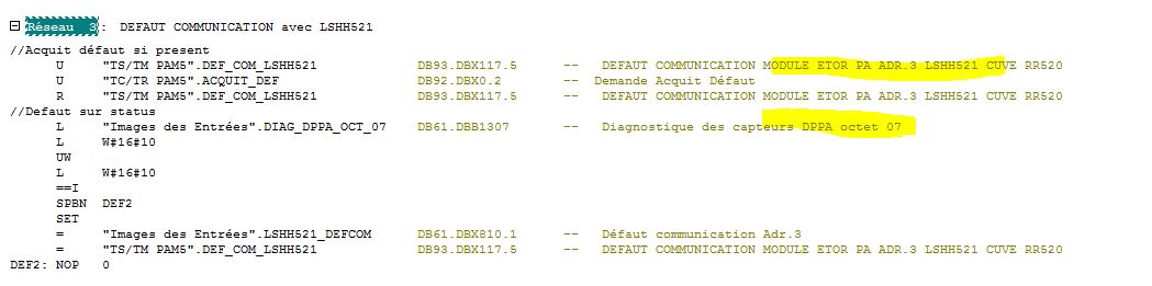 Je comprend pas pourquoi et comment l'adresse de diagnostique du LSHH et rattaché à l'octet 7 du pointeur 1300...