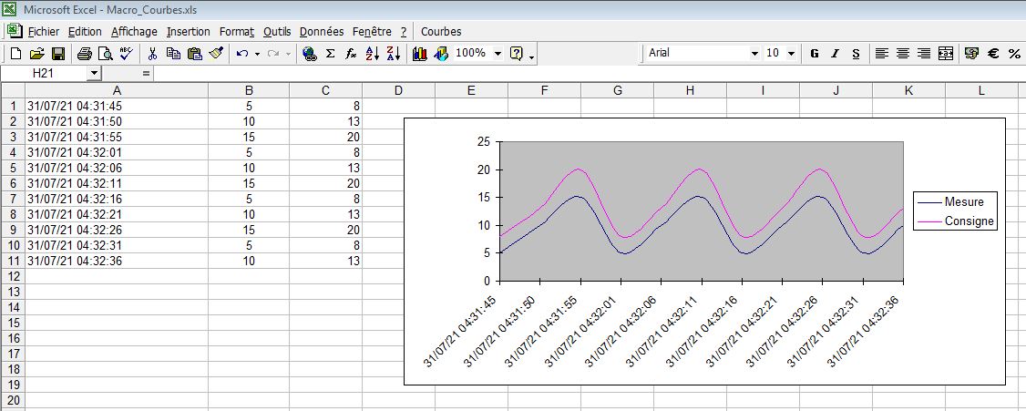 L’enregistrement de la journalisation sur une clef USB génère un fichier binaire .DAT, inexploitable pour l’importer sur Excel et générer une courbe avec. La solution consisterait à afficher les voies dans un Résumé d’événements à la même période que celle de la journalisation, puis de l’enregistrer sur un clef USB , ça génére un fichier .CSV à importer sur Excel