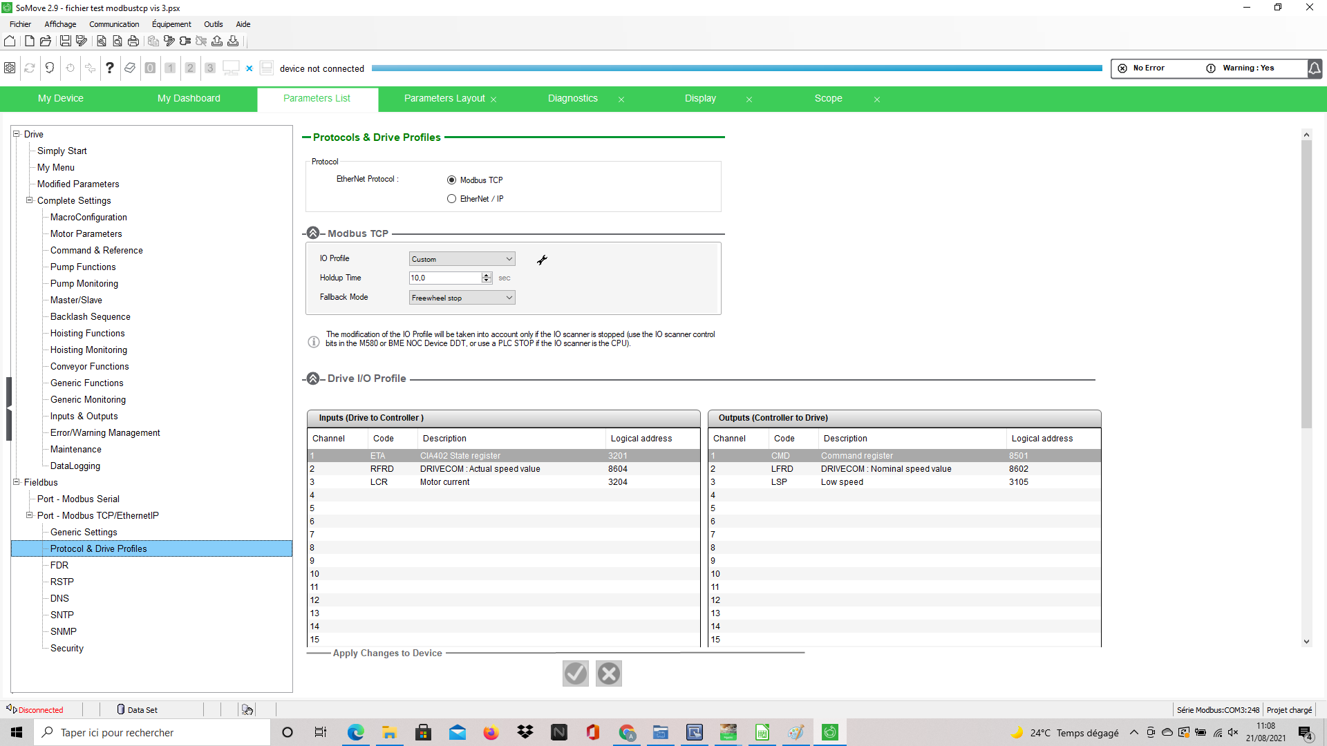 La sur ce projet j'ai voulu passer en modbus car le nombre de variateur qui gravite autour du process augmentent et pour simplifier un peu l'armoire électrique.