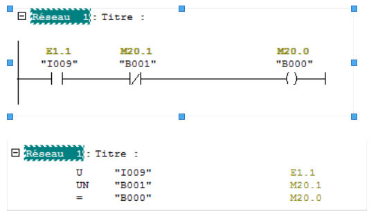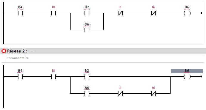 en siemens, ne peut être traduit de list vers Langage à Contact. Il faut insérer le "OU" (nouvelle branche ).