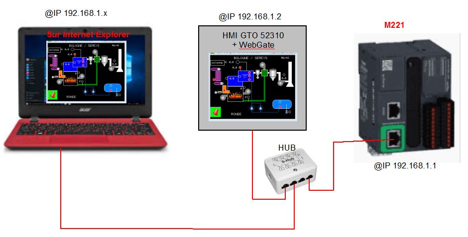 Bonjour, je suis étudiant en génie industriel et j’aurais voulu savoir dans le cadre d’un stage si il était possible de relier un tm221ce40r à un hmigto5310 et en même temps à un pc et que les deux écrans communiquent entre eux ?