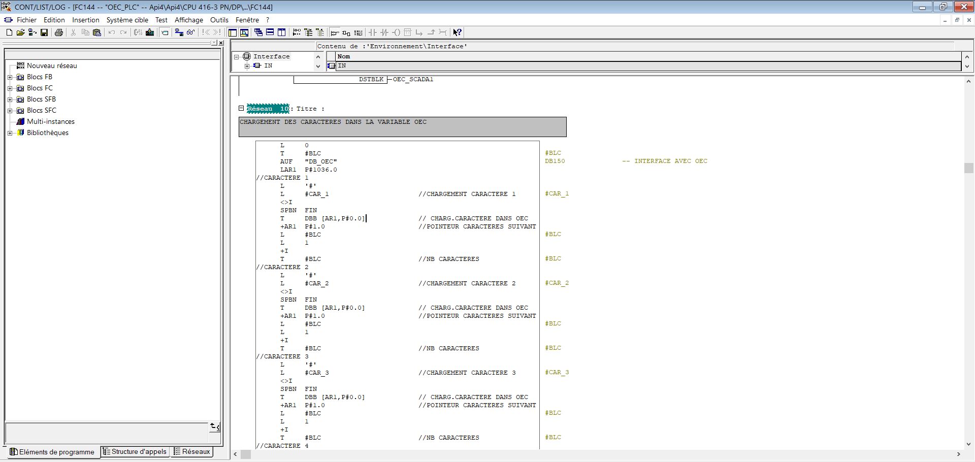 Ci-joint, une capture du programme sous step7 avec le pointeur (P#0.0)