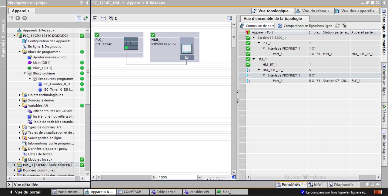 Les câbles sont bons, je me suis même connecté aux deux équipements IHM et API (voir capture d'écran post ci dessus partie gauche tout est au vert).