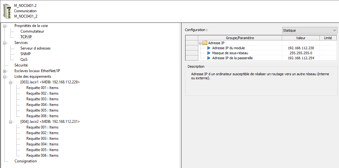 je déclare sur le PLC qui a la NOC un réseau Ethernet comme suit :