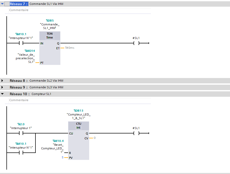 Est ce qu'il est possible d'utiliser plusieurs fois la même sortie dans réseau du même bloc sous TIA Portal. (Ci-joint un exemple de m'on problème)