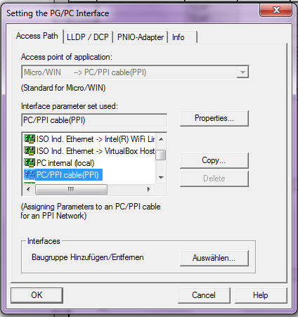 Dans "Paramétrer interface PG/PC" as tu bien choisi dans Interface parameter set used: PC/PPI câble(PPI) comme ci-dessous: