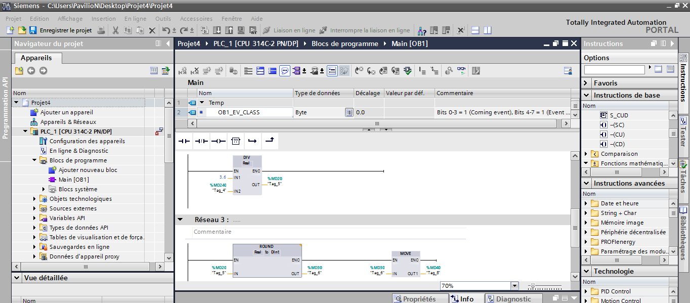 tu ne t'ai pas trompé dans le type pour ta variable MD30 ? dans le simulateur c'est un REEL alors que tu l'as converti en DINT