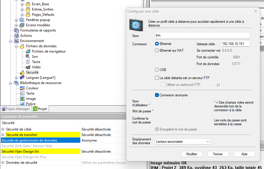 autre problème, impossible de récupérer les données avec le gestionnaire de données de vijeo: