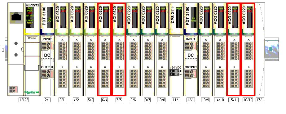 Est ce que la connexion des cartes entres elles a été vérifié ? Moi j'essayerai de tous désassembler, souffler, nettoyer et remonter le tout. Je ne dis pas que ça résoudra le problème mais ça ne coute rien d'essayer. Par le passé j'ai eu des soucis avec ces ilots Advantys, dès que ça bouge un peu ça ne marche plus.