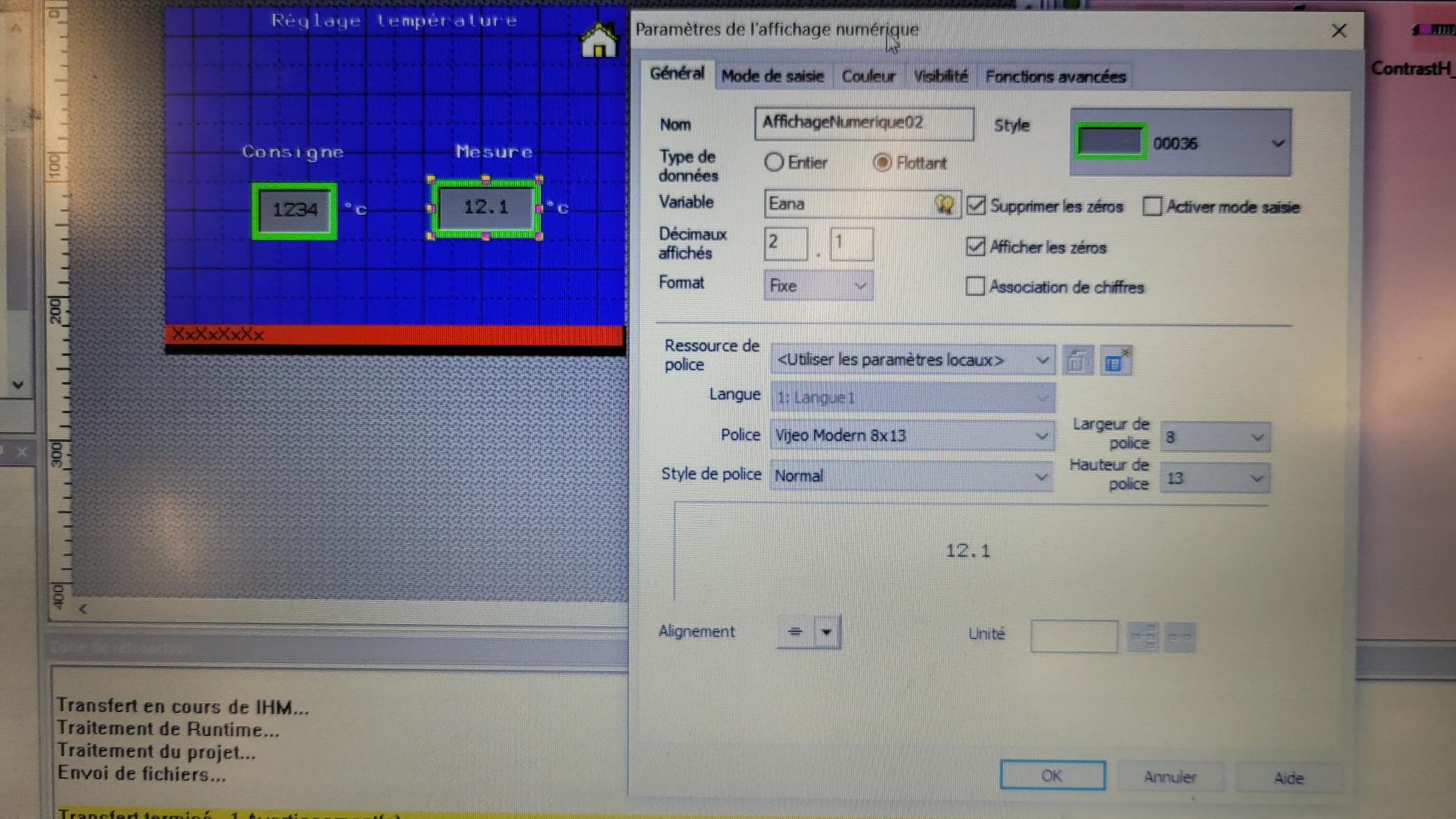 Fais un x10 sur ta variable dans l’automate pour te débarrasser de la virgule et tente de nouveau un affichage avec un entier cette fois.