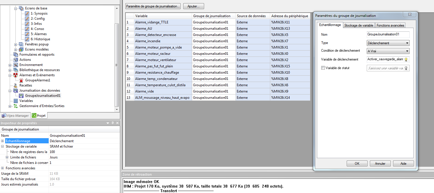 J'arrive à faire cela grâce à l'option "Enregistrer dans un fichier" dans le groupe d'alarmes créée, cependant j'aimerais supprimer les alarmes acquittées ou retombées, des prochaines sauvegardes pour éviter des doublons et une surcharge de données dans le fichier Excel.