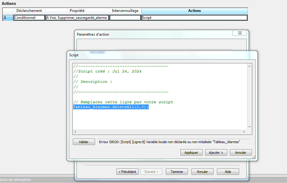 Dont la raison de mon post à l'origine, j'aurais voulu savoir si c'était possible de supprimer, après une sauvegarde, les alarmes retombées ou acquittées pour ne pas les retrouver dans une prochaine sauvegarde. Si cela est possible bien sûre.