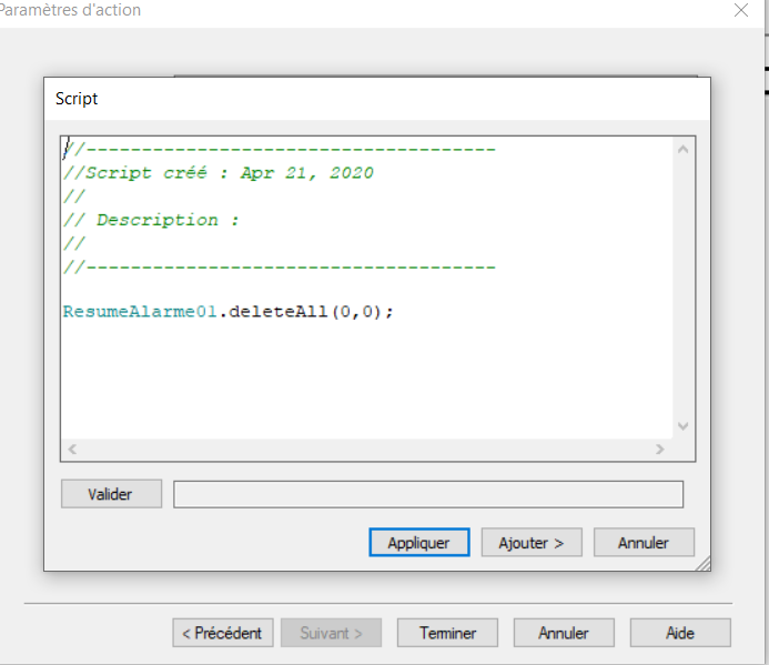 Concernant votre message DamDam, j'ai déjà réalisé cette manip cependant, celle-ci ne marche qui via un bouton donc, part appuie manuel d'un opérateur sur l'IHM. Je vous transmets une capture d'écran du script via bouton et via action.